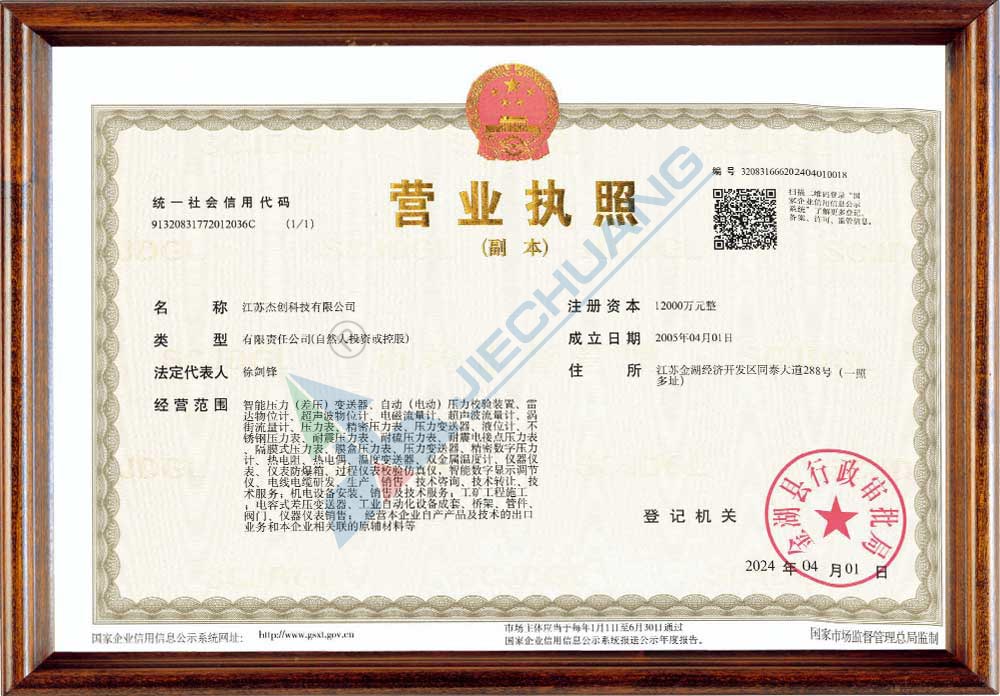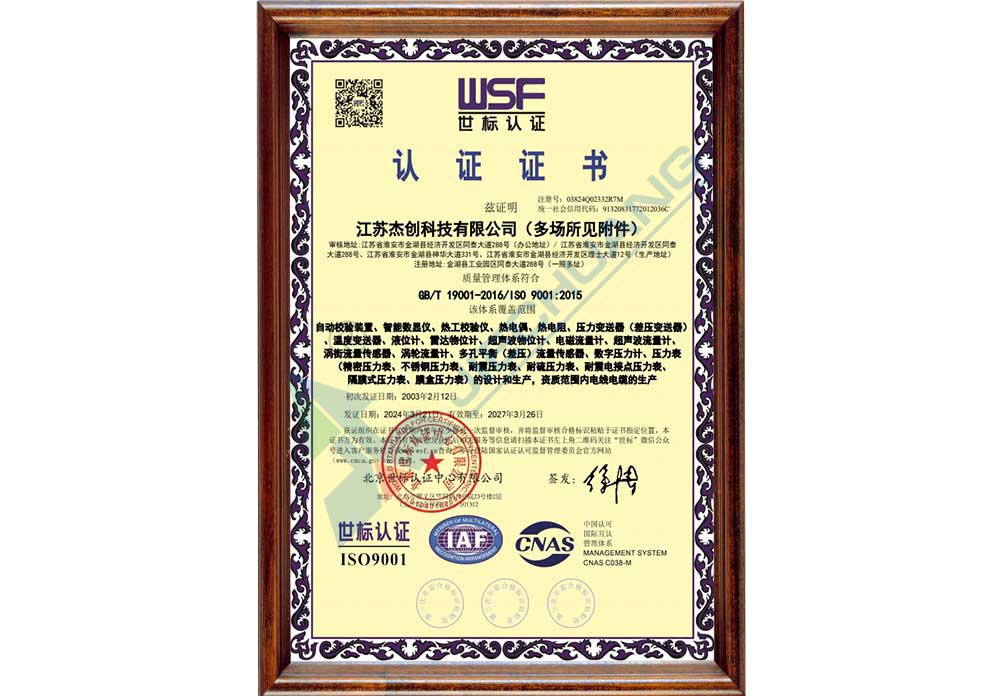 ·取得压力表系列、精密压力表、压力变送器计量器具许可证